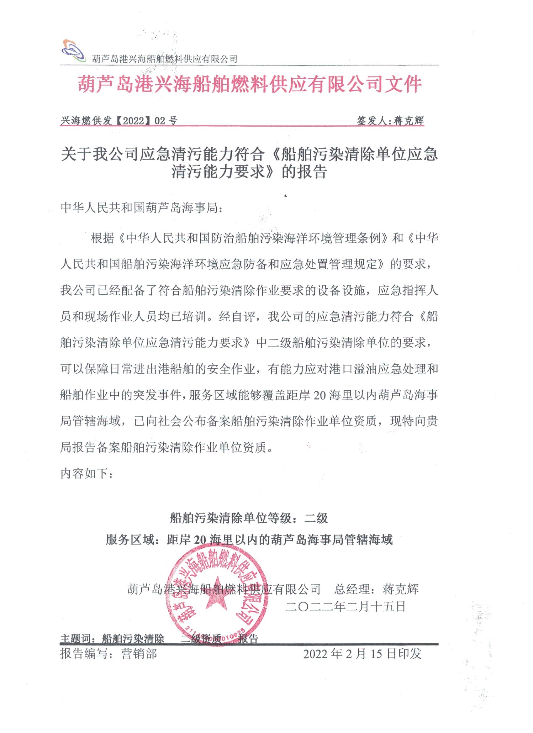 葫蘆島港興海船舶燃料供應(yīng)有限公司