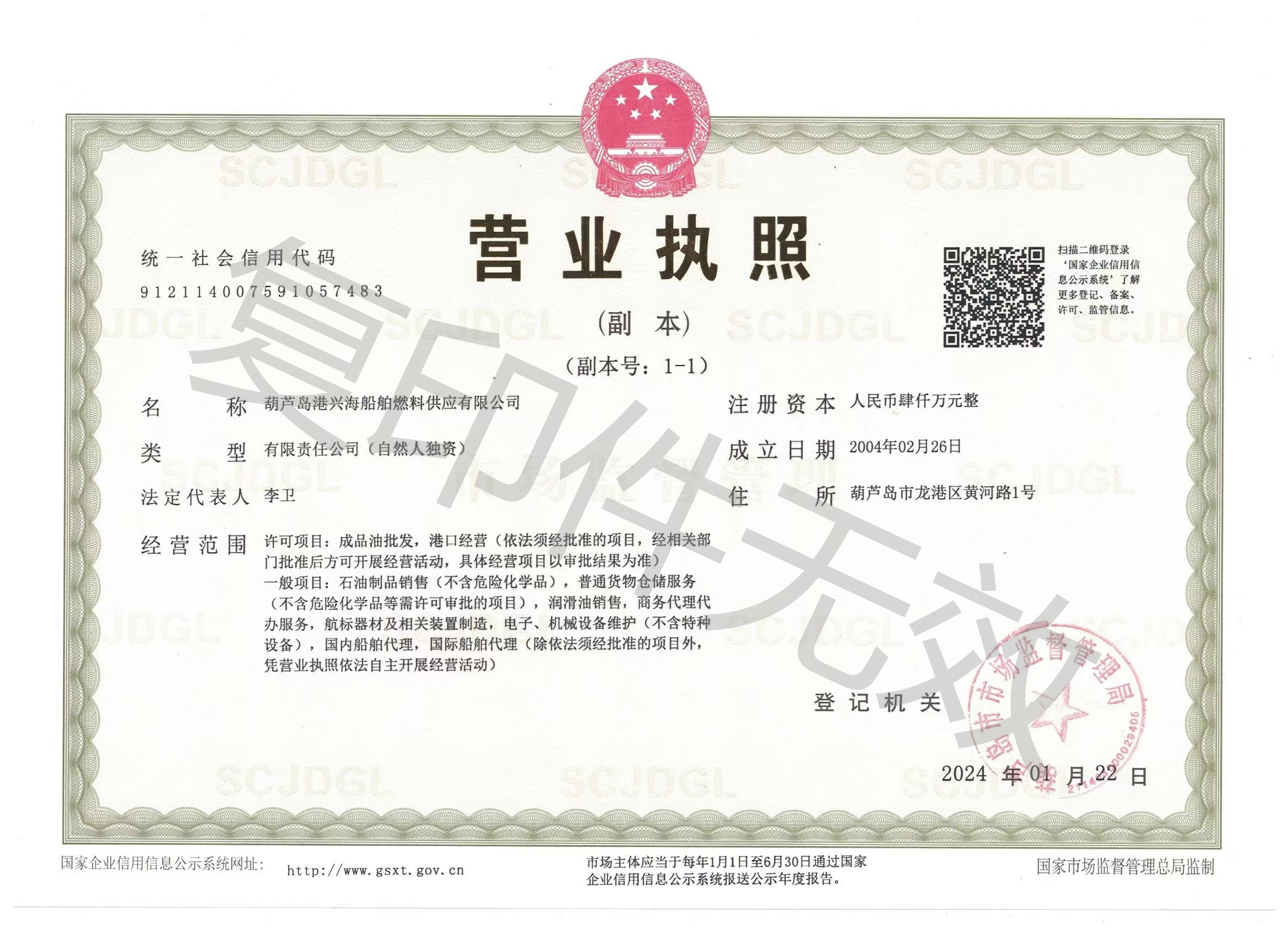 葫蘆島港興海船舶燃料供應有限公司