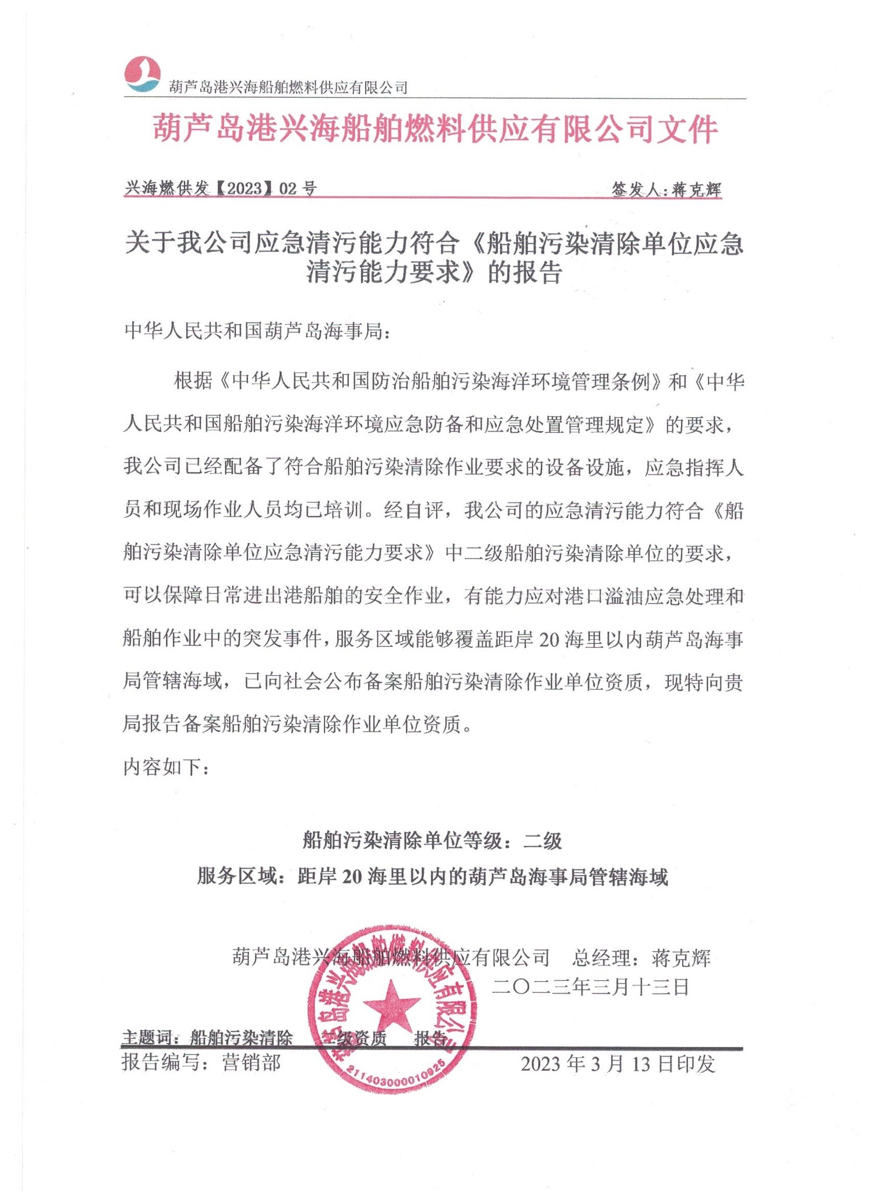 葫蘆島港興海船舶燃料供應(yīng)有限公司