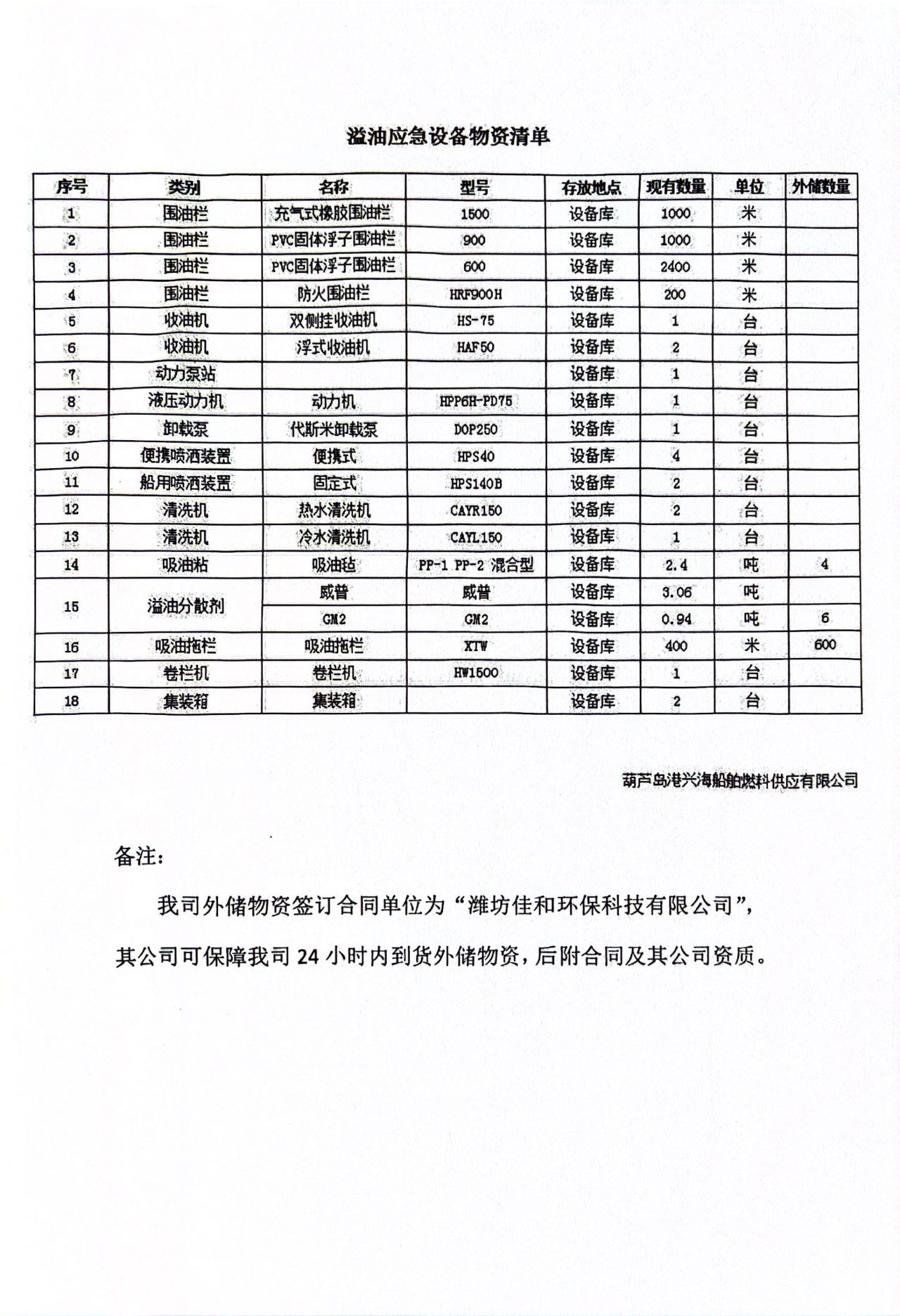 溢油應(yīng)急設(shè)備物資清單