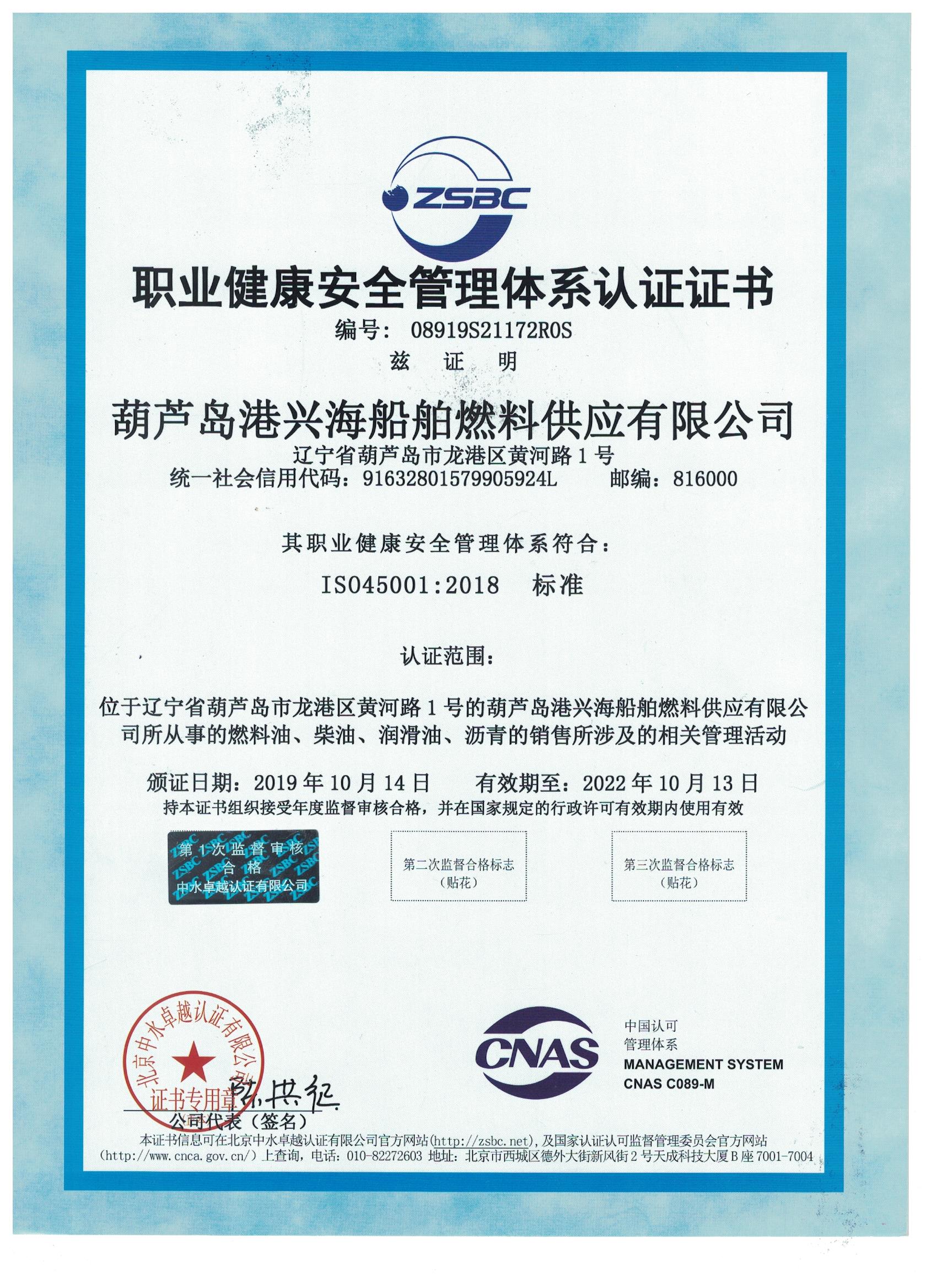 職業(yè)健康安全管理體系認(rèn)證證書(shū)